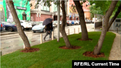 Его коллега Денис Ахматов рассказал, что в администрации города не верят в успех проекта – по мнению чиновников, газон не переживет зиму.