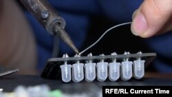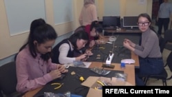 "Вот эта плата уже специальная. Там есть разъемы для спайки. Здесь они очень близко расположены, они очень маленькие, поэтому можно задеть соседний контакт", – рассказывает Кызжибек Батырканова, участница программы.