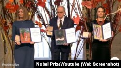 В Осло 10 декабря прошла церемония награждения лауреатов Нобелевской премии мира. В этом году ее получили белорусский правозащитник и основатель правозащитного центра "Вясна" Алесь Беляцкий, российский "Мемориал", который занимается исследованием и сохранением памяти жертв сталинских репрессий в России, и Центр гражданских свобод из Украины.