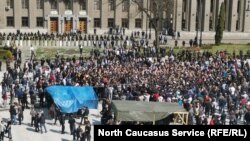 Во Владикавказе около двух тысяч человек 20 апреля вышли на несанкционированный митинг к зданию администрации региона с протестами против карантина и с требованием отставки местного правительства и главы Северной Осетии Вячеслава Битарова. К 18:00 по московскому времени силовики вытеснили митингующих с площади Свободы и оттеснили до моста у площади Штыба.